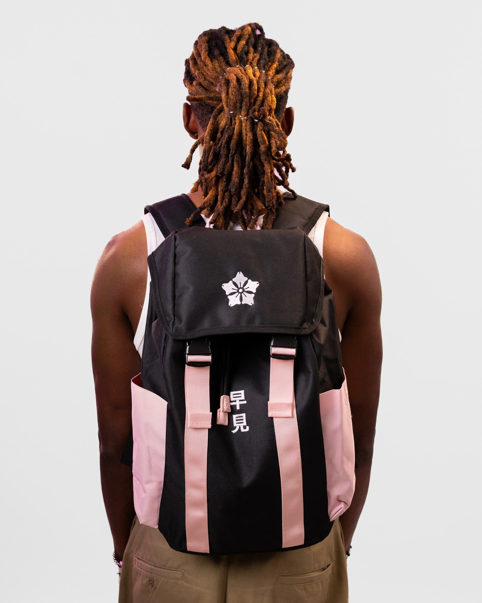 An essential backpack that combines streetwear style , elegance , and functionality . With its black and pink design and the Hayami kanji finely embroidered in the center and stamped on the cords, this unique backpack stands out for its elegant and bold style. Designed to follow you everywhere, whether during your travels or in the intense rhythm of everyday life , it meets all needs with its practical storage space, its side pockets and its durability. A product designed for those who seek both aesthetics and practicality in a versatile and trendy fashion accessory .